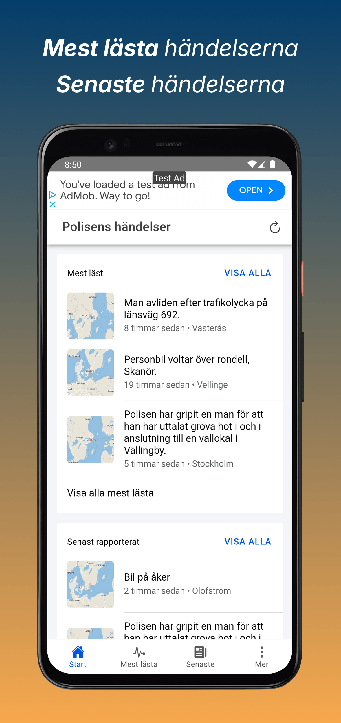 – Ny startsida där du snabbt hittar både de senast rapporterade händelserna men även de mest lästa händelserna.